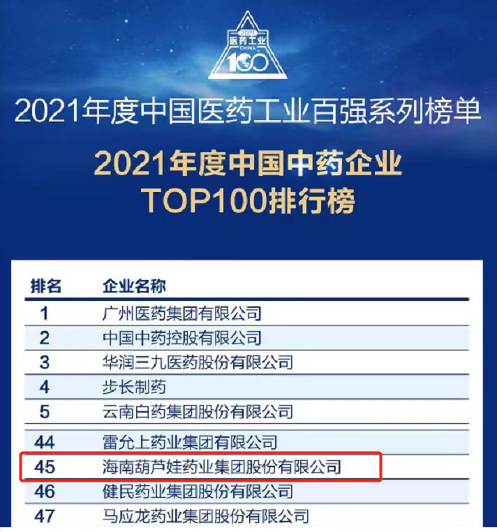 万众瞩目的2021年度中国医药工业百强系列榜单在会上盛大发布,DB视讯药业集团百尺竿头更进一步,位列中国中药企业TOP100排行榜第45位,连续第三年入围中国中药企业TOP100百强榜。